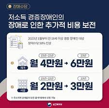※ 2023년 기준 장애수당이 2015년 이후 처음으로 4만 원에서 6만 원으로 인상되었습니다.